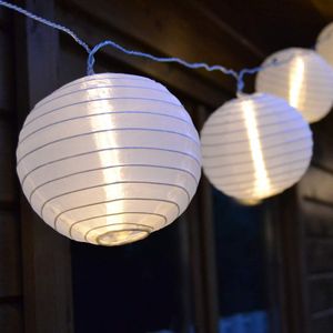 Solar Lichterkette Mit 20 Lampions Weiss O 7 5 Cm Led Kaltweiss