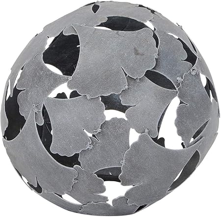 Pos Dekorative Deko Kugel Garten Kugel Ginkgo Metall Hellgrau In