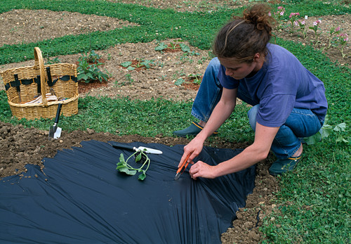 Unkrautbeseitigung Mittels Schwarzer Plastikfolie