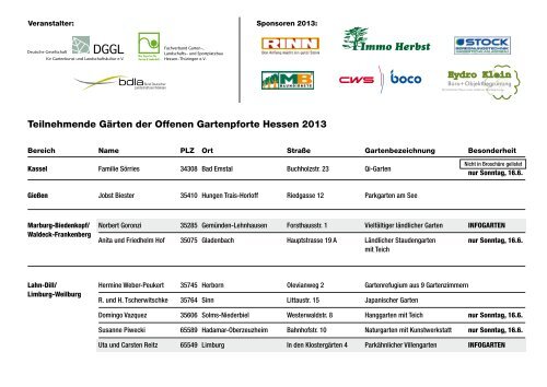 Teilnehmerliste 2013 Auch Als Pdf Offene Gartenpforte Hessen